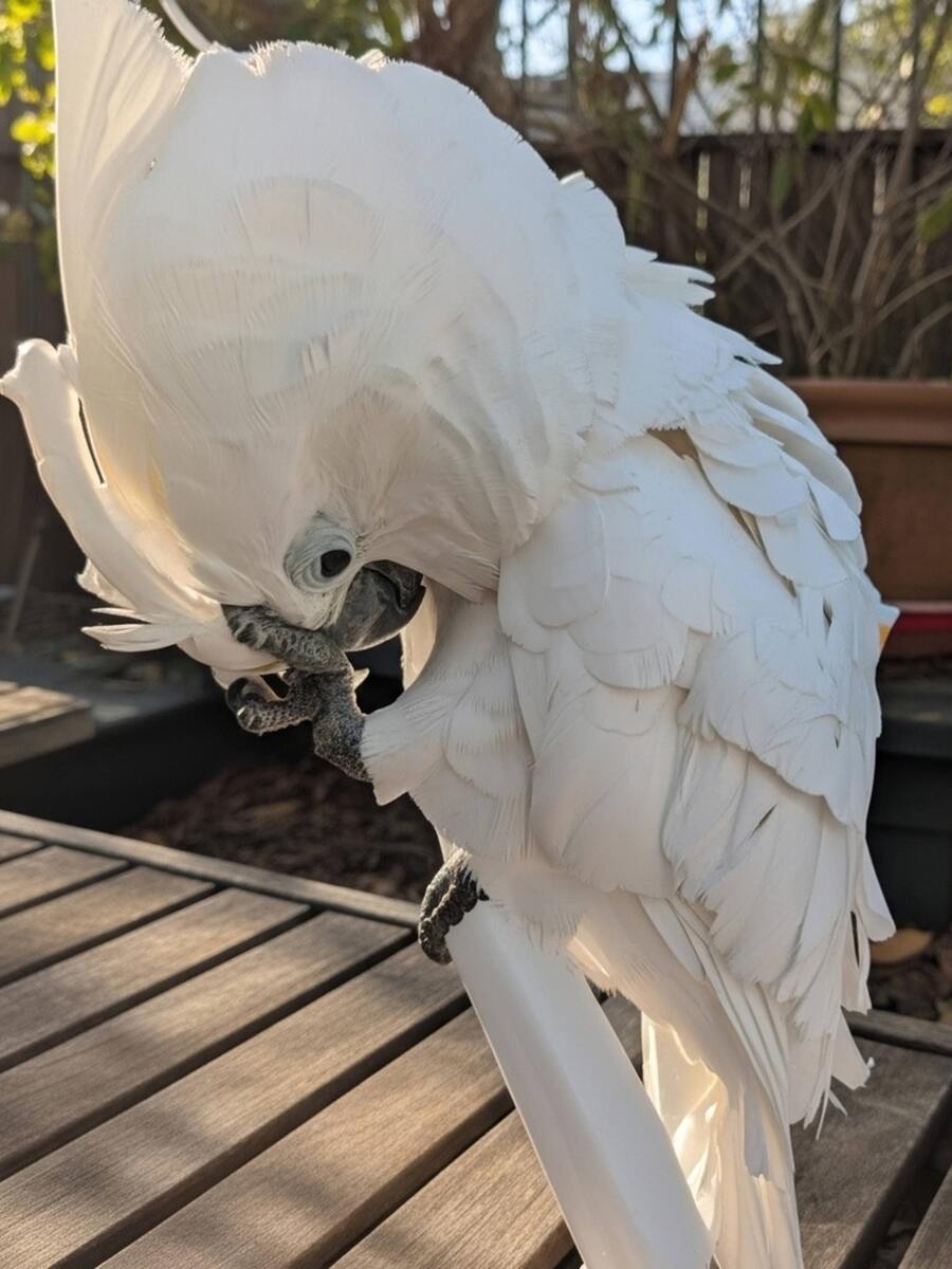 All boarding birds will have fresh food, waters changed and cage papers changed twice a day. All dishes will be thoroughly washed daily. On intake, all birds will be photographed for showing their current feather/skin conditioning and weighed for our record use only. Each birds appetite, droppings, and general demeanor will be thoroughly monitored while boarding. If we concerned in any way we will try and be in immediate contact with you.